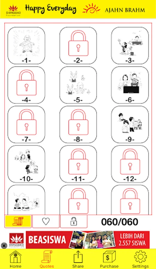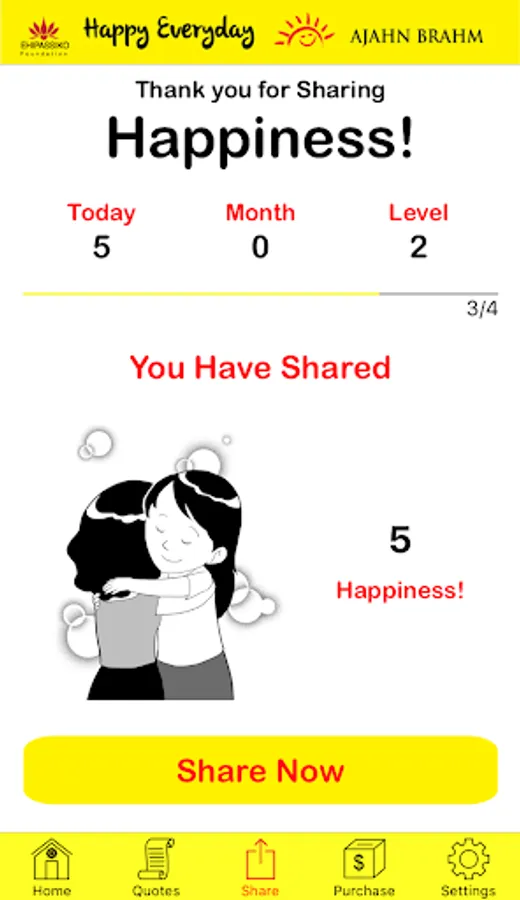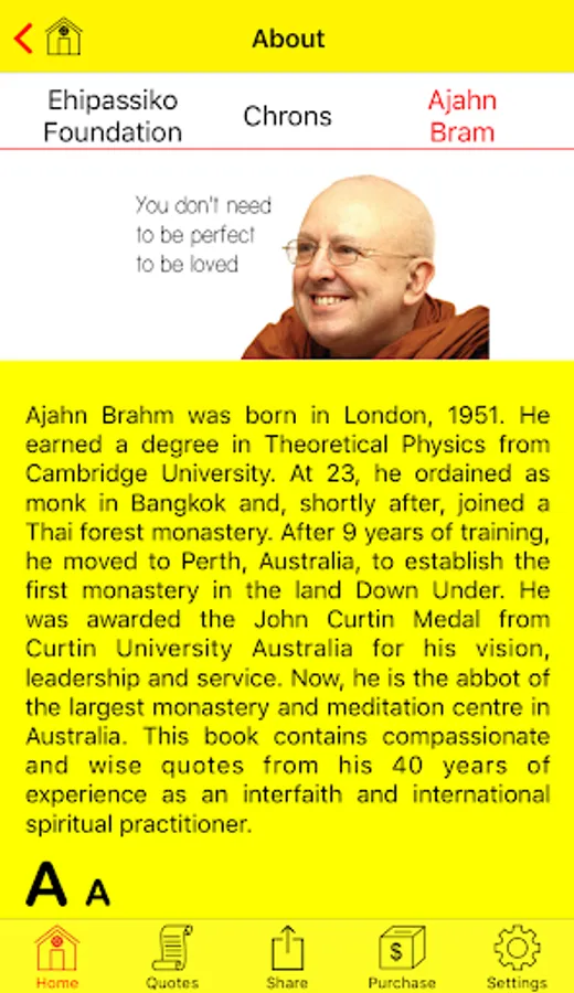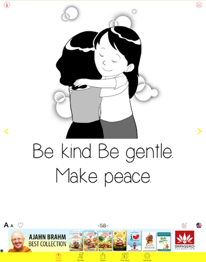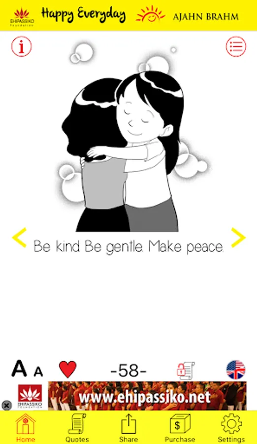 Make yourself happy everyday with wise quotes from Ajahn Brahm, graduate of theoritical physics from Cambridge University who had been ordained as a monk since 1974 and had become a renowned international meditation teacher. The quotes in this application will make you become kinder and happier everyday.