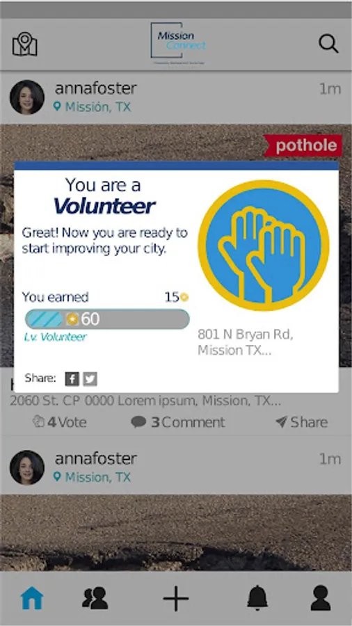 Is there a pothole that is driving you crazy? How about a weedy lot that needs cut? Mission Connect is the first social network for civic engagement where you can report non-emergency issues, such as potholes or graffiti, while earning points and rewards.