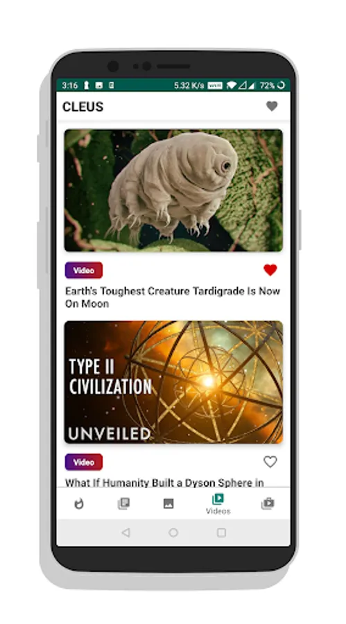 User interface of this app is pretty simple or minimal. You'll see contents like science or tech news, videos, facts or more, you wanted to see just after starting this science news app. No extra button press required lol.