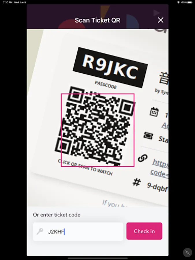 - Flawless Check-in Experience: Scan QR code to quickly check in tickets. Alternatively, you may also enter the ticket code for remote check-in.