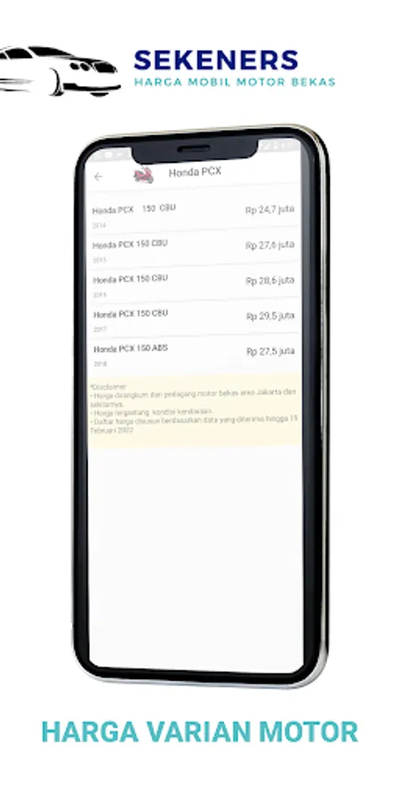 The Sekeners application provides prices for used cars and motorbikes around Jakarta, Bogor, Tangerang and Bekasi.