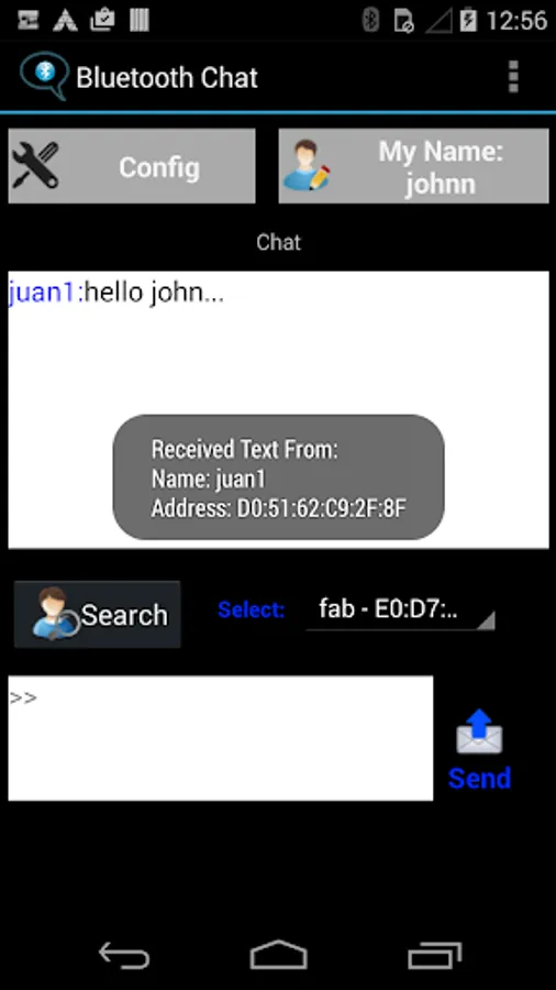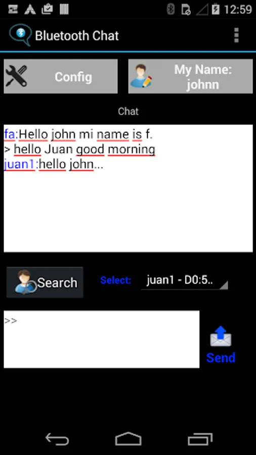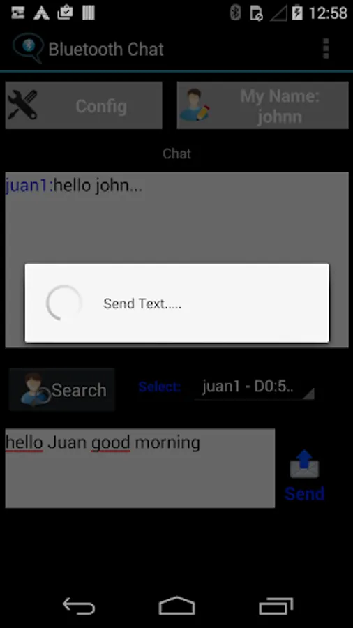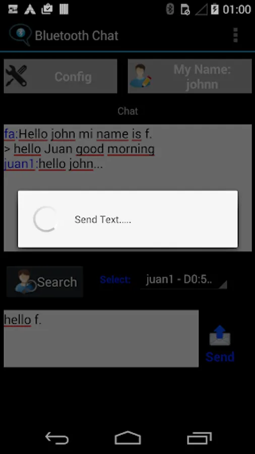 Useful application in android to establish communication between devices and send messages via bluetooth