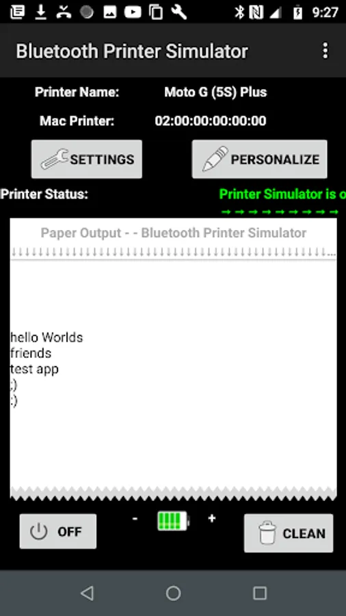 This application is an excellent tool to simulate a bluetooth thermal printer, ideal for testing for those people who do not have availability of a real printer