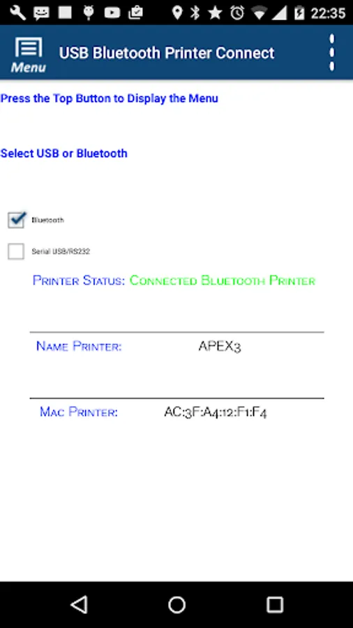 This is an app to print on thermal printers using two connection modes USB or Bluetooth