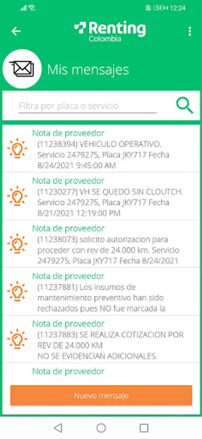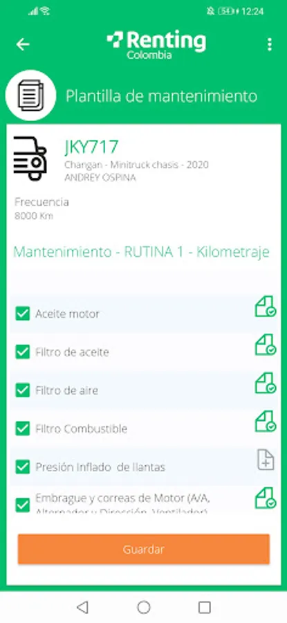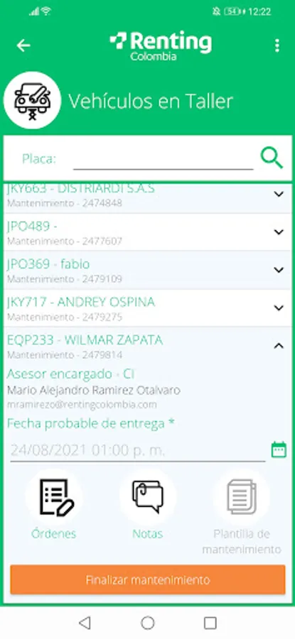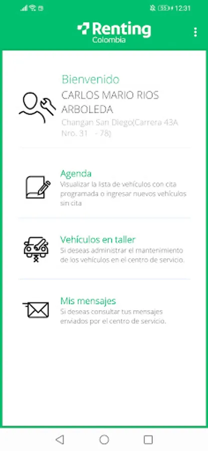 The application seeks to generate efficiency and ease of management services fleet Renting Colombia allies that serve these requirements, delivering a user friendly tool that allows especially the service advisors interact with the system from a mobile without requiring continuously move to a fixed station working as allows online information services process, entry or exit.