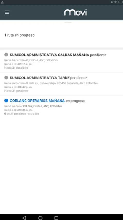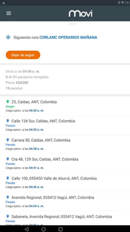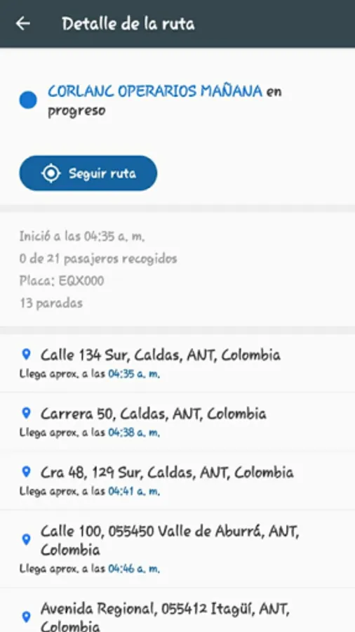 The passenger app allows the capture of the positions of the routes and make the follow-up