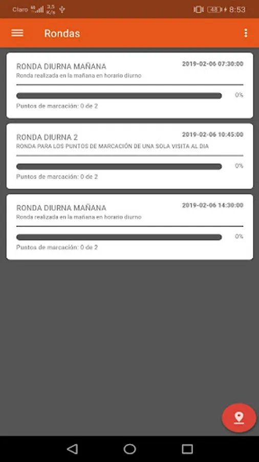 Application that allows to conduct surveillance rounds in houses, premises, shopping centers, parking lots, closed complexes, farms, warehouses and other spaces destined to be controlled and monitored constantly.