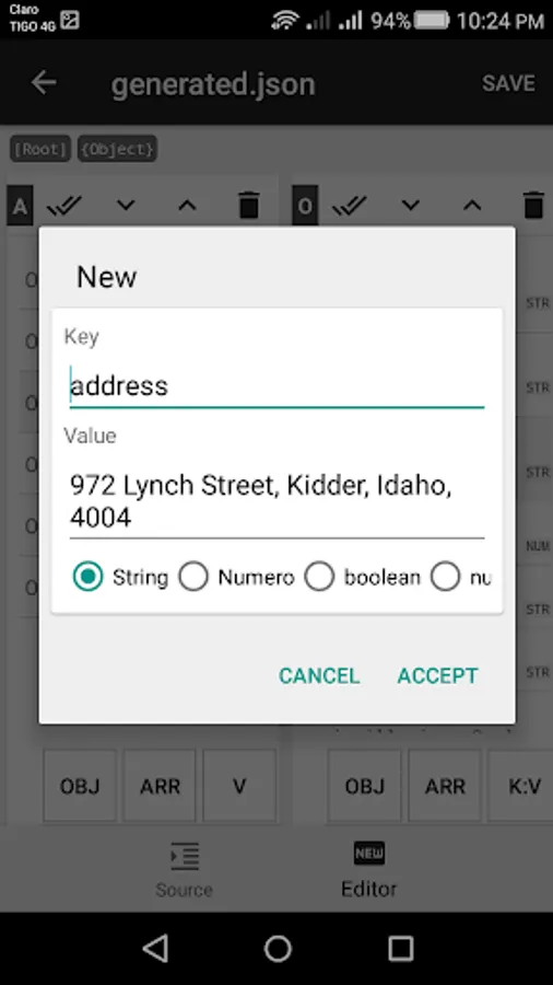 If someone shares with you a JSON file in Whatsapp, just click on share and select Json Planet so you can view or edit it.
