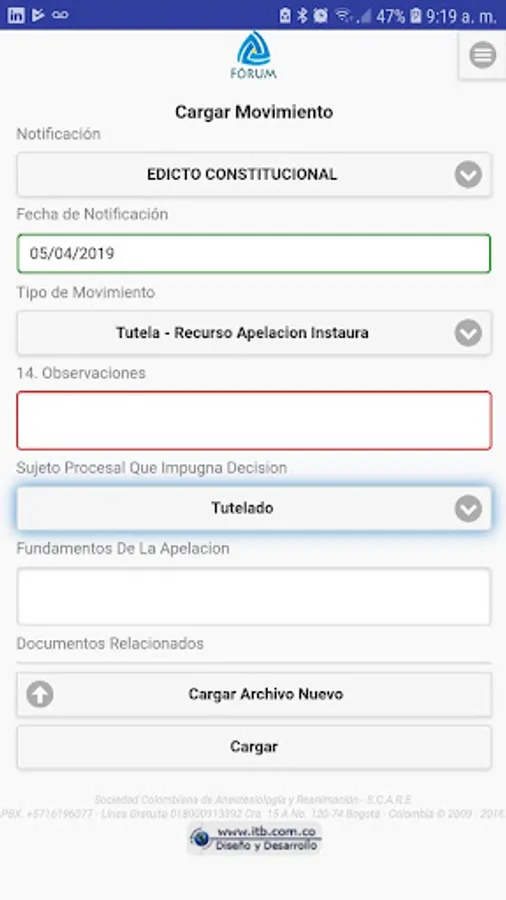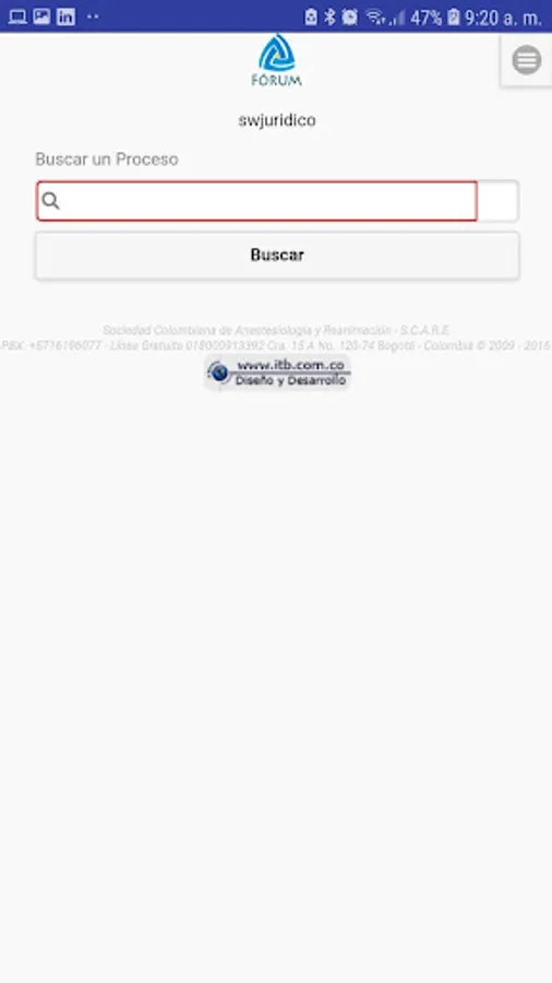 This application is a light and mobile version of Forum, the Legal Software of the Colombian Society of Anesthesiology and Reanimation S.C.A.R.E., available for smartphones with Android Lollipop operating system or higher.