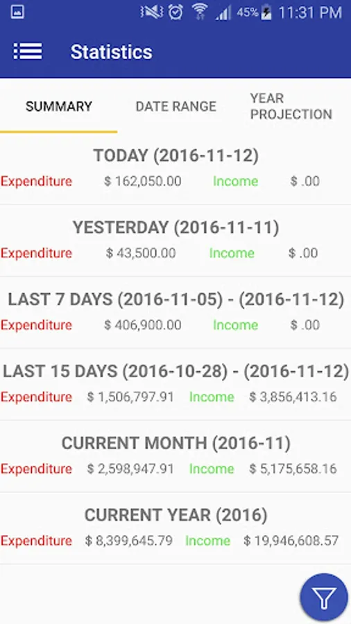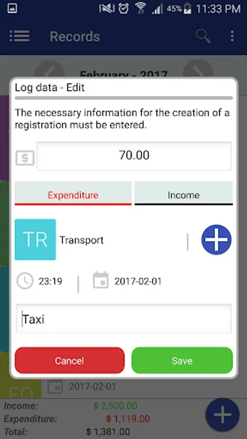 * You can see income, expenses and balance existing in real time.
