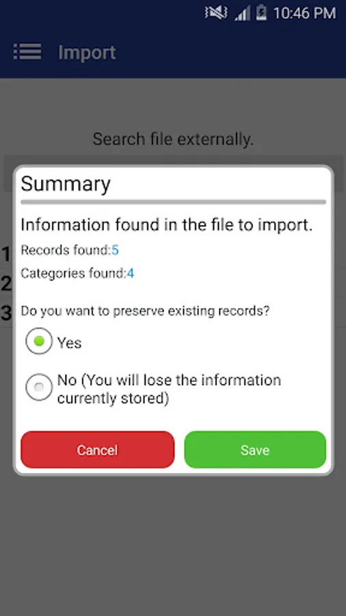 * Import information using .xls (Excel) files.