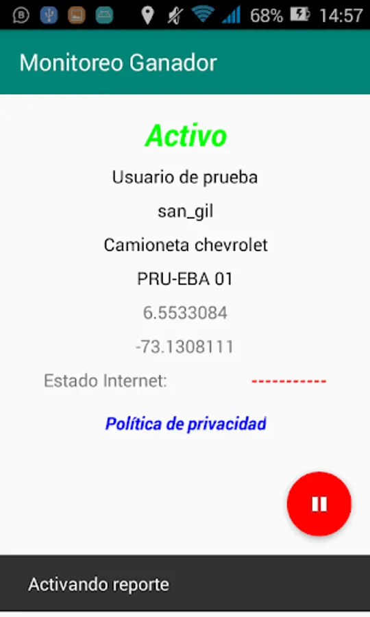 Ganador Tracking Screenshots