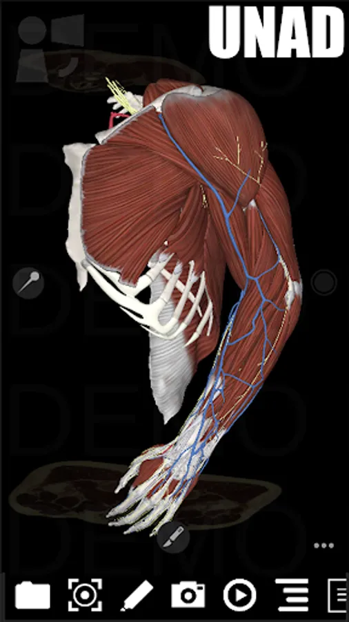 3Dissect is a portable, realistic anatomy atlas featuring organs generated from slice images of a real specimen. 3dissect mobile allows to establish visibility of organs and systems to make them transparent, hidden or visible, it is also possible to see the model from any organ and distance. 3dissect includes color sections in the sagittal and coronal transverse planes, which are overlaid on the model and can be used to cut organs and/or systems. Users can add pins to name organs and anatomical structures or to include links to internet resources. 3dissect includes a file manager that allows you to save the scenes created during the different sessions as well as share them with other users. The 3dissect painter allows schematic editing from the 3dissect model in any visibility state. Once the scenes have been made public, the URL of the scene can be obtained to include it in an e-learning lesson. 3dissect allows you to submit evaluations created by other users.