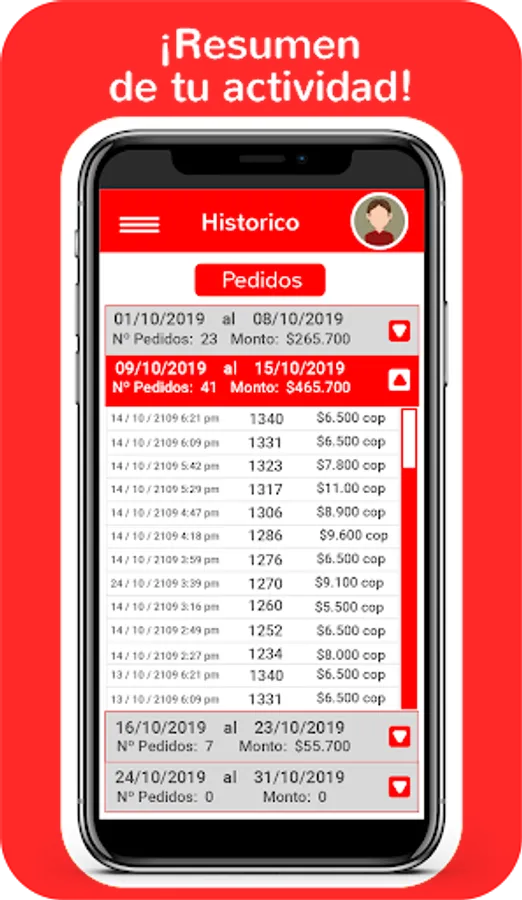 - Debts, so you can visualize the money generated from the deliveries of your orders.