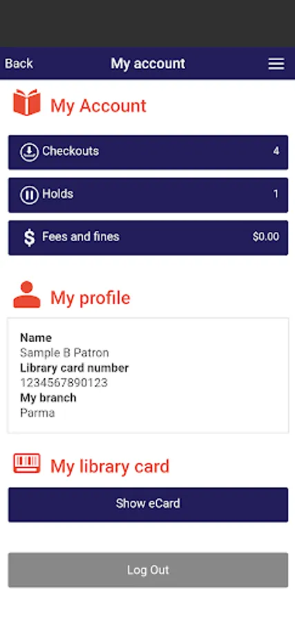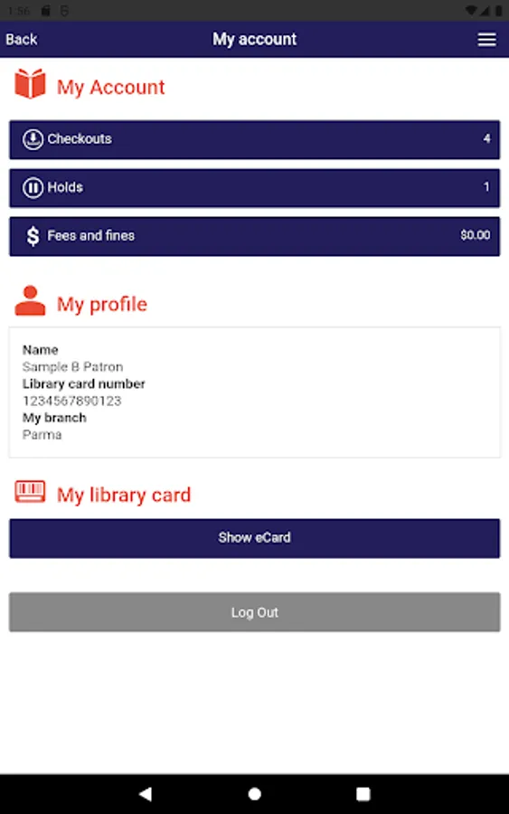 • Use the My Account feature to view your eCard and to see holds,checkouts and fines.