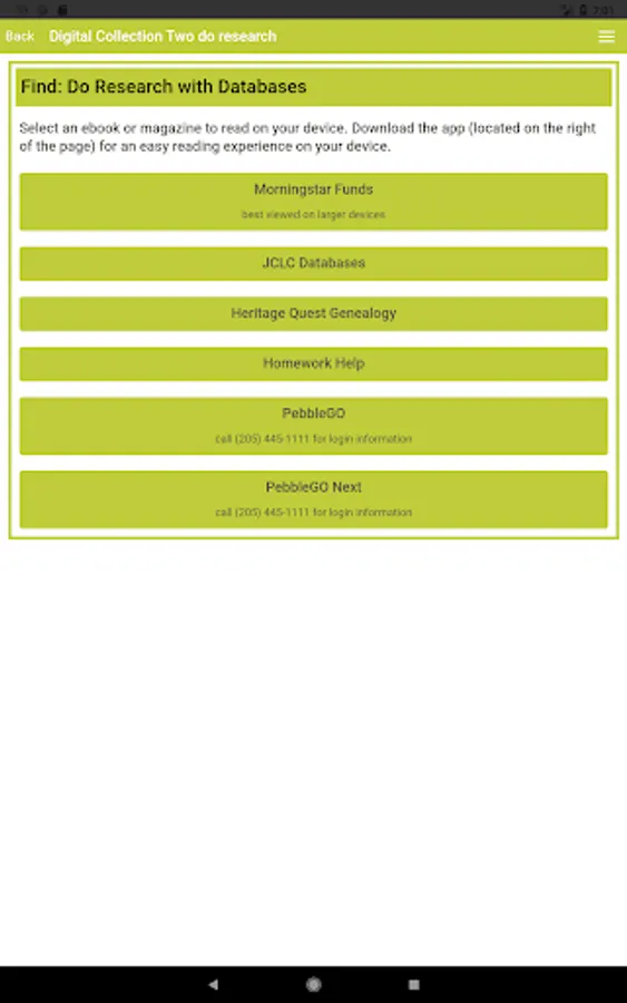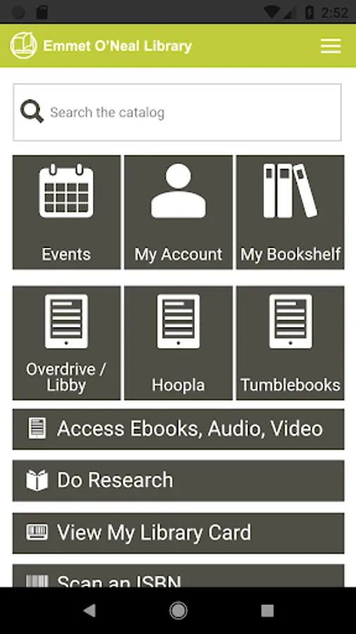 The O’Neal Library app is your gateway to the library’s services from your phone or tablet. You can check due dates, renew eligible items, store your library card, and search the library catalog.