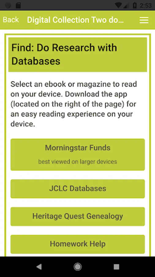 You can also easily access our electronic resources - Overdrive/Libby, Hoopla, Kanopy, Tumblebooks, and much more. Some ebooks can be read directly from your device.