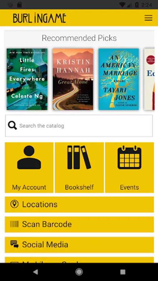 The Burlingame Library app is your connection to the library's services from your mobile device. Check your account, pay fines, renew items, search the catalog, place holds and use your digital library card (eCard).