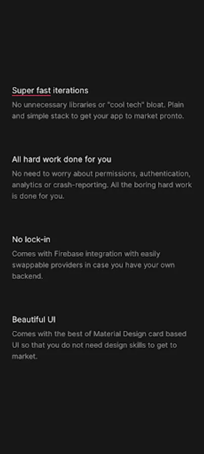 No unnecessary libraries or "cool tech" bloat. Plain and simple stack to get your app to market pronto.