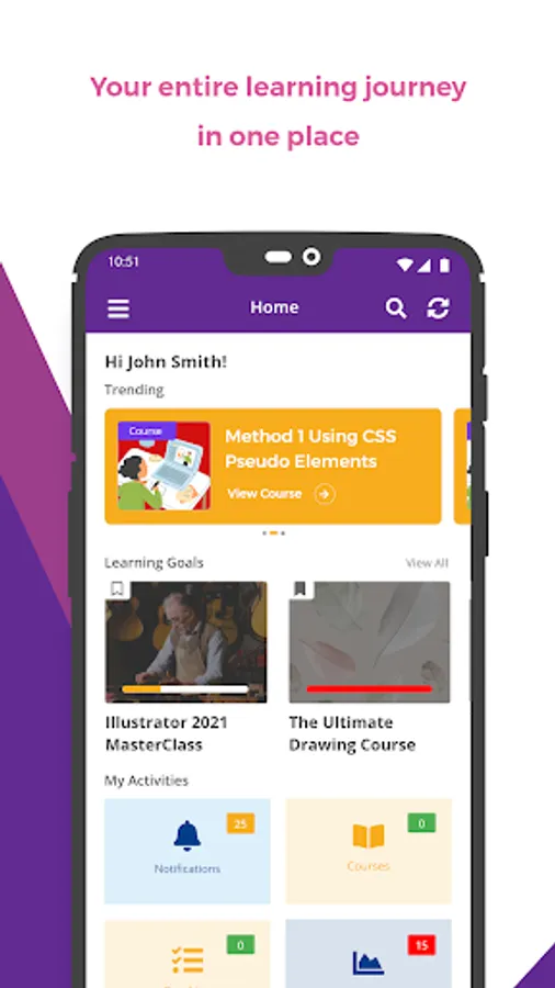 This app will allow you to take your learning programs with you on your smartphone, so you can learn on-the-go! Any activity performed on this app will automagically sync with your progress on your mobile, tablet, laptop, or desktop.