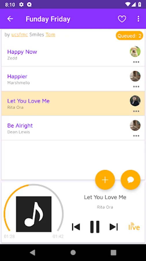 Start a live music session on Quorus and let others contribute their songs to create a collaborative listening experience!