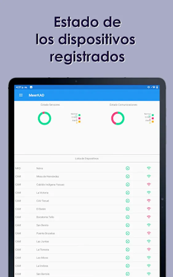 MeerKAD® is the mobile application that allows access to data and alerts from the different devices that make up the MeerKAD® ecosystem. It is associated with the web application and works in real time to offer a great user experience.