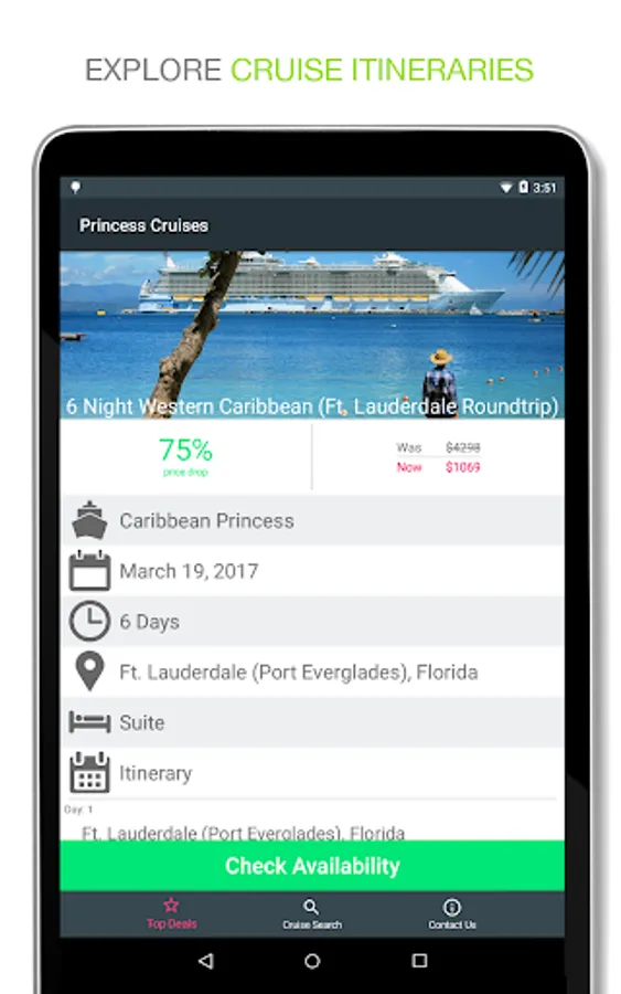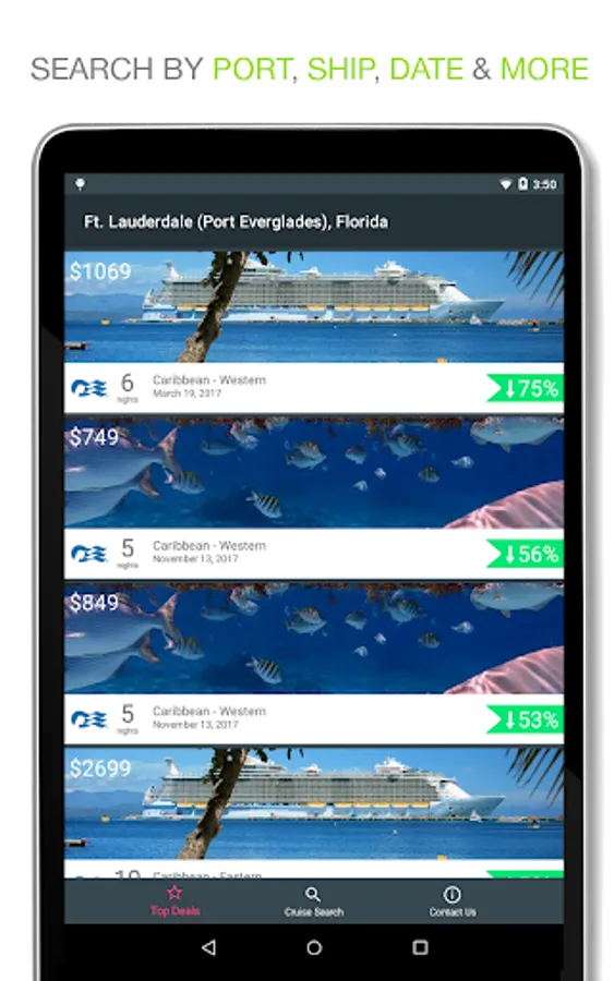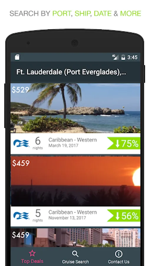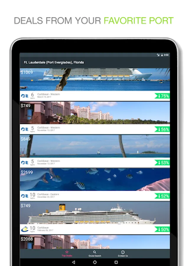 Cruise Price Drop: every day we analyze millions of cruises from Carnival Cruise Line, Celebrity Cruises, Royal Caribbean, NCL, Disney Cruise Line, MSC, Holland America and more. Often cruise ships aren’t full and these companies lower prices to fill ships to capacity. We highlight these price drops in the app so you can get the Best Cruise Deals out there!