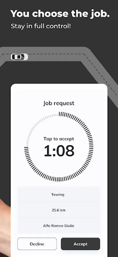 We provide you mobile access to drivers on the road looking to find the nearest assistance.