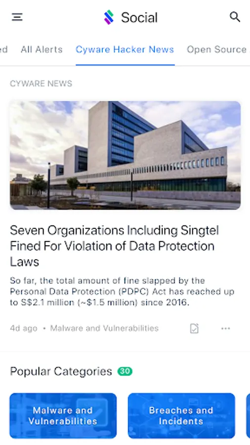 Cyware Social app has been designed to keep security professionals and general users up-to-date on the security threat landscape. Cyware Social brings to you the latest security articles written by Cyware’s team of experts as well as top security updates from third-party sources. These articles are categorized into appropriate categories for easy accessibility.