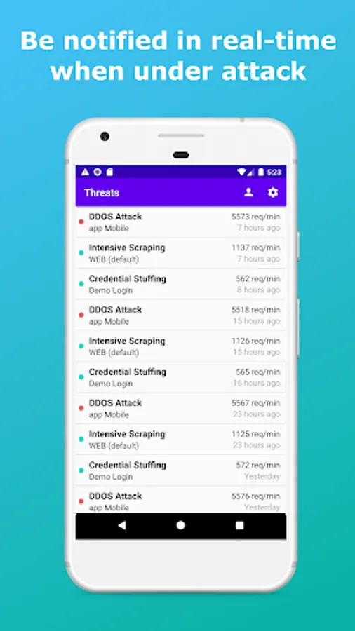 Get notified in real time when bad bots attack, and configure your bot protection in few taps.