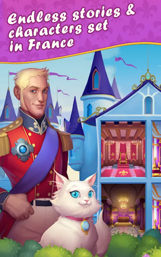 Bonjour, puzzle lovers. You’re about to enter Tarte Tales, the historic match 3 world of a lifetime. The story of Marie Antoinette will unfold with each level you pass. 👑