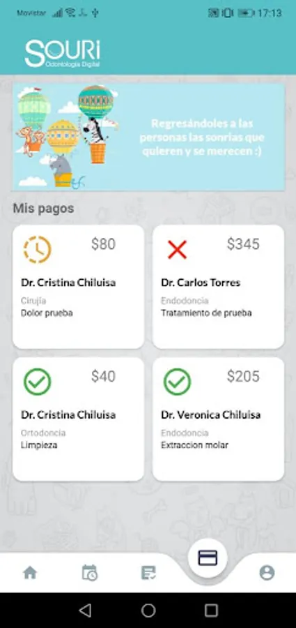 Souri Clinic is a private application for the exclusive use of its patients. Patients can view their personal information, appointment history, view treatments, view payments, and book medical appointments with specialists in the clinic.