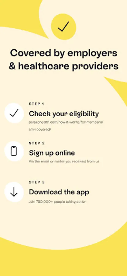 1. Before downloading the app, sign up online using the information in the email your employer sent or the mailer you received. If you aren’t sure whether you’re covered, look up your employer using this link: http://pelagohealth.com/how-it-works/for-members/am-i-covered/