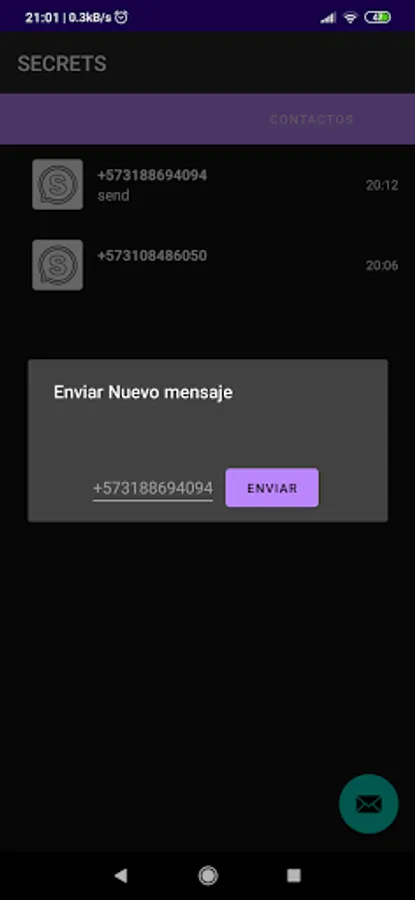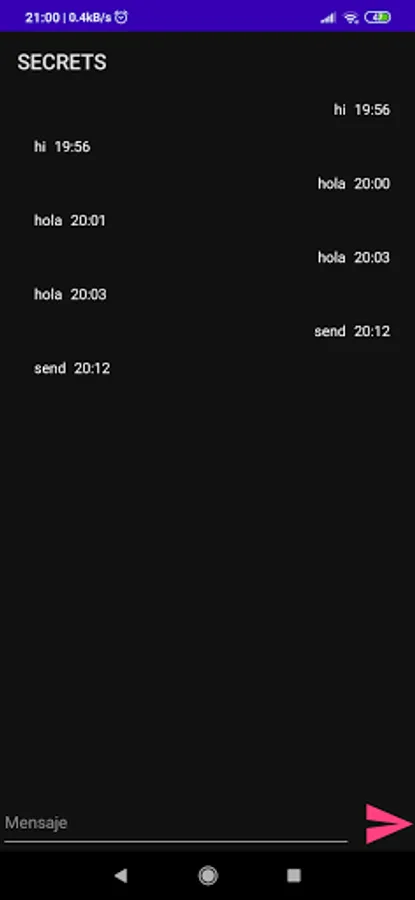 SECRETS is an application that allows communication between two devices, communication is secret, messages are sent encrypted, point to point, no message sent is saved in our databases.