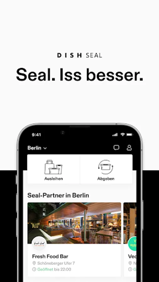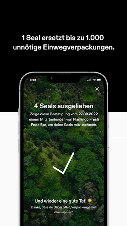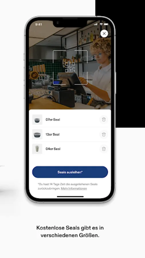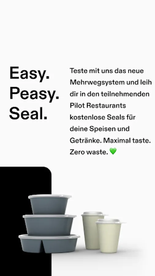 Whether pasta, fries or coffee-to-go: there are free seals for a wide variety of food and drinks. 100% sustainable. 100% recyclable. 100% made in Germany. You can find participating partners in the app and conveniently control every step from collection to delivery.