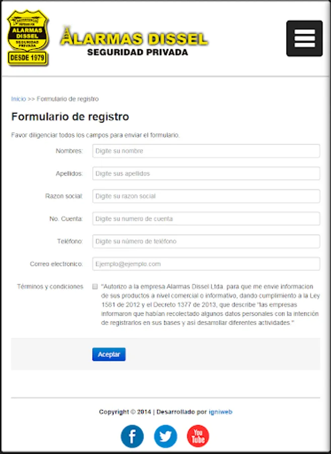 Our mission is to fully satisfy the needs and expectations of customers, leveraging our highly qualified talent and the most advanced technology on the market for sale, installation and integrated security systems monitoreode maintaining leadership in the region and projecting our national presence within a framework of ethical values, seeking daily welfare and development of our employees and the community in which we operate, with clear criteria of profitability for the shareholders of the company.