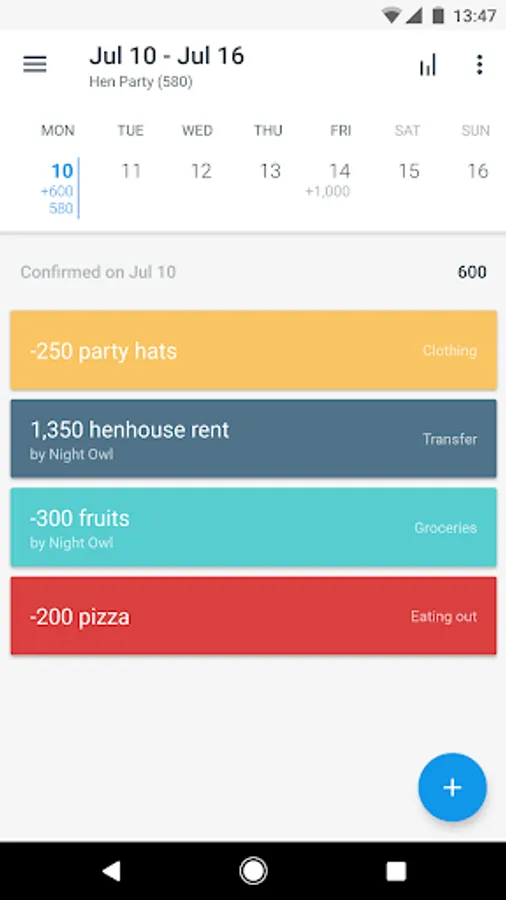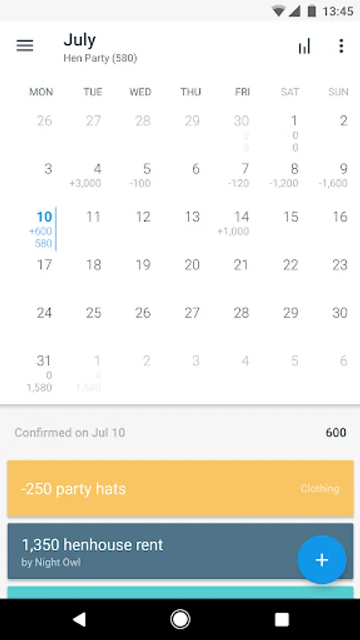 • A simple calendar-based interface where you can add, keep track and visualize your transactions.