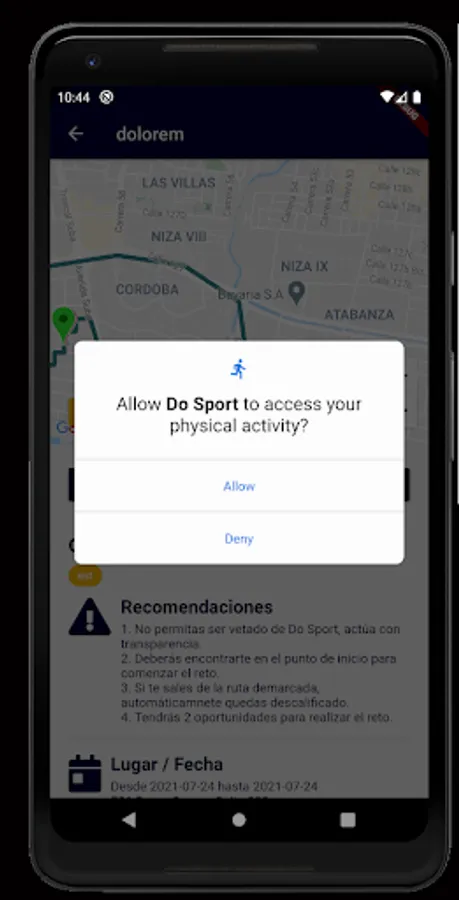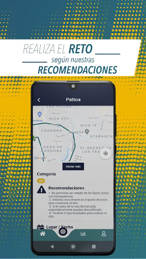 4. At the time of completing the challenge, the app will verify that you are at the starting point, if not, it will guide you.