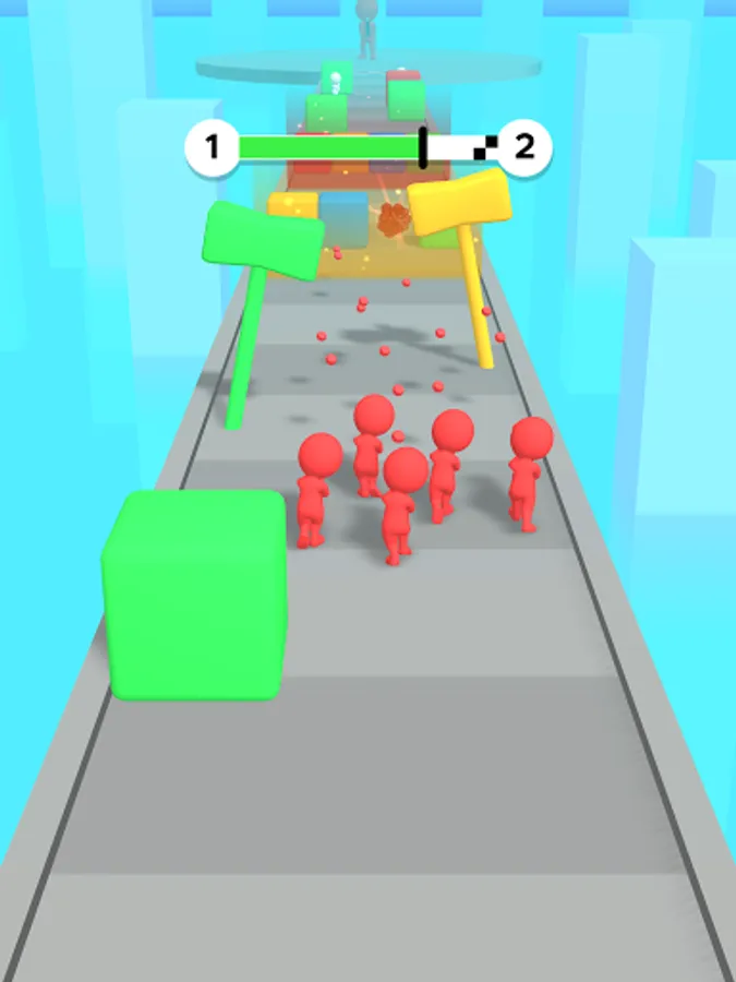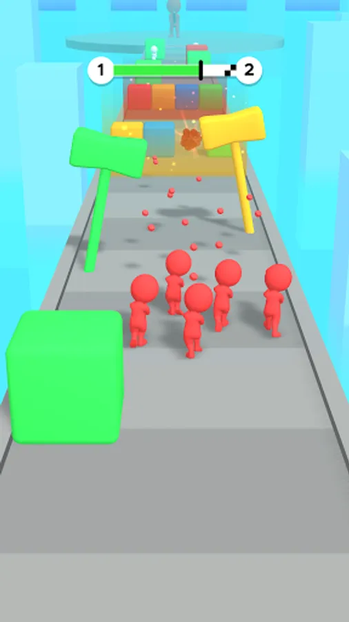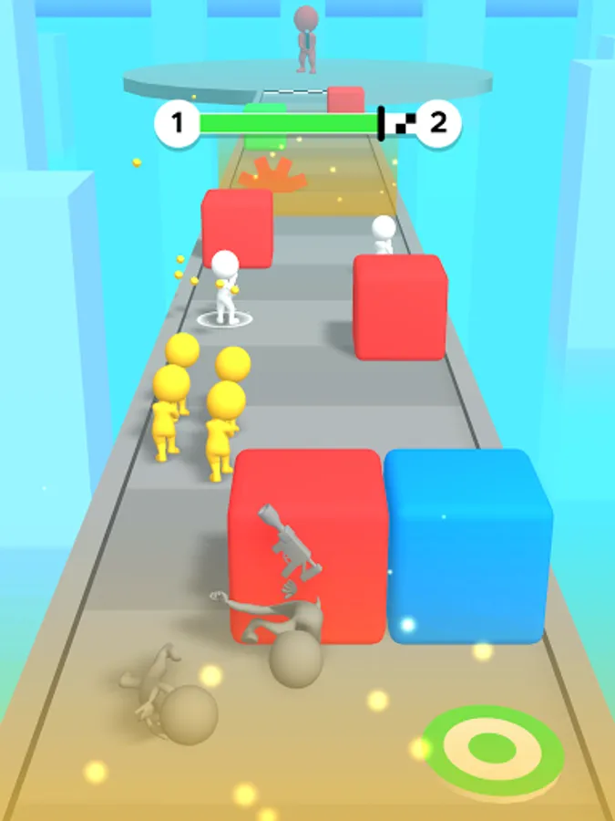 Grow you crowd and shoot the items of the same color as you.