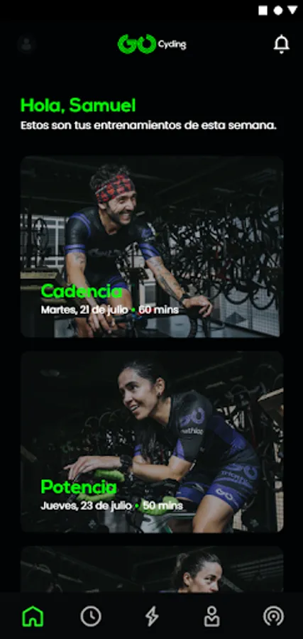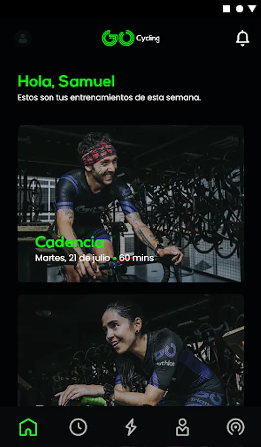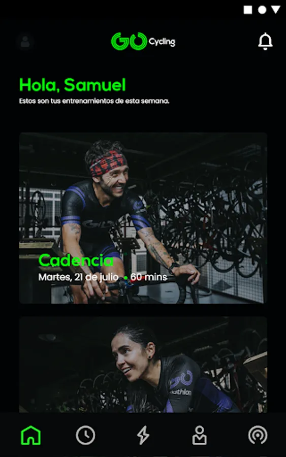 The app gives you access to the trainings planned by your teachers specifically for you. It allows you to connect to different sensors such as heart rate, cadence and also the simulator you have at home (GoCycling, Wahoo, Tacx etc) to be able to perform your workouts at any time of the day and view your performance in real time .