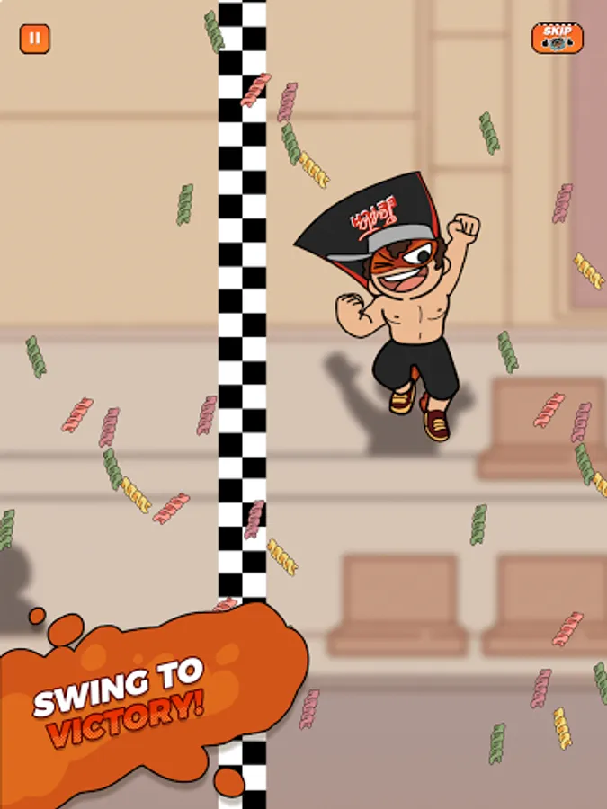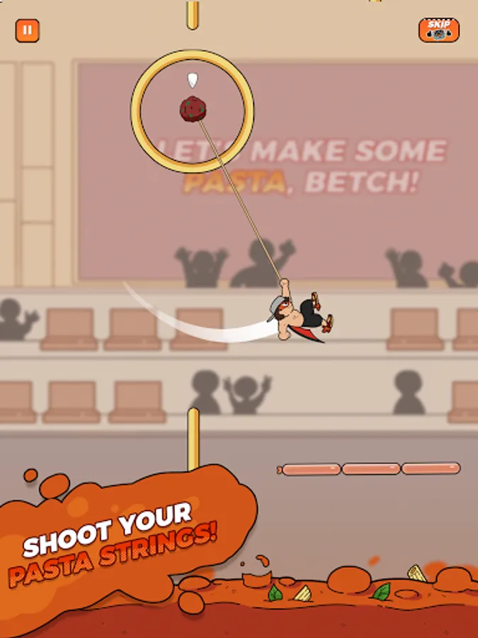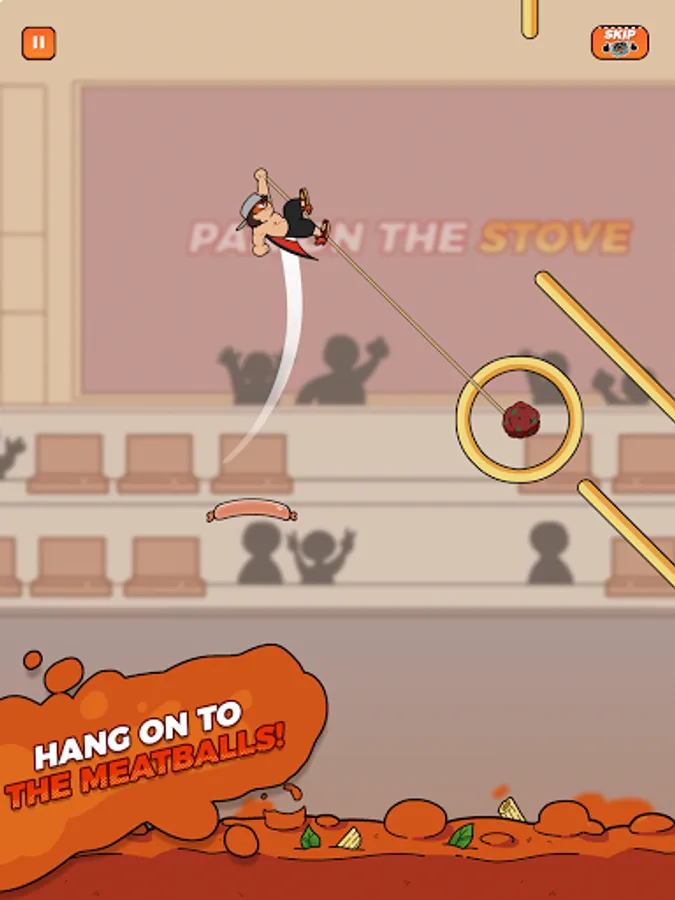 * Press on the screen to hang on to the meatballs and make incredible jumps.