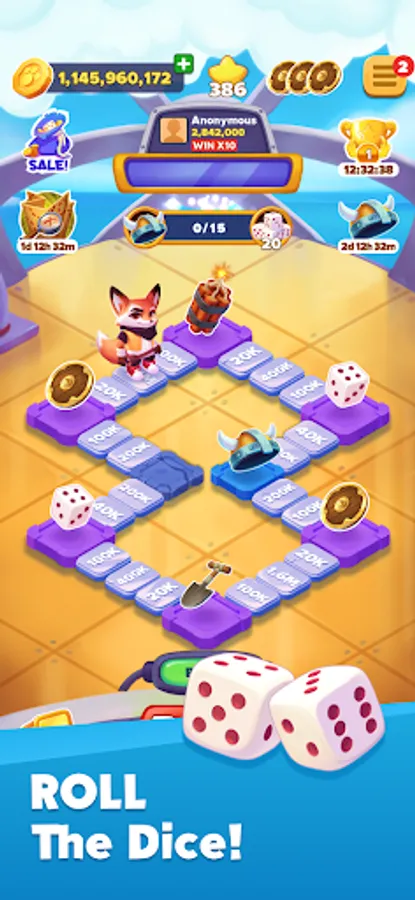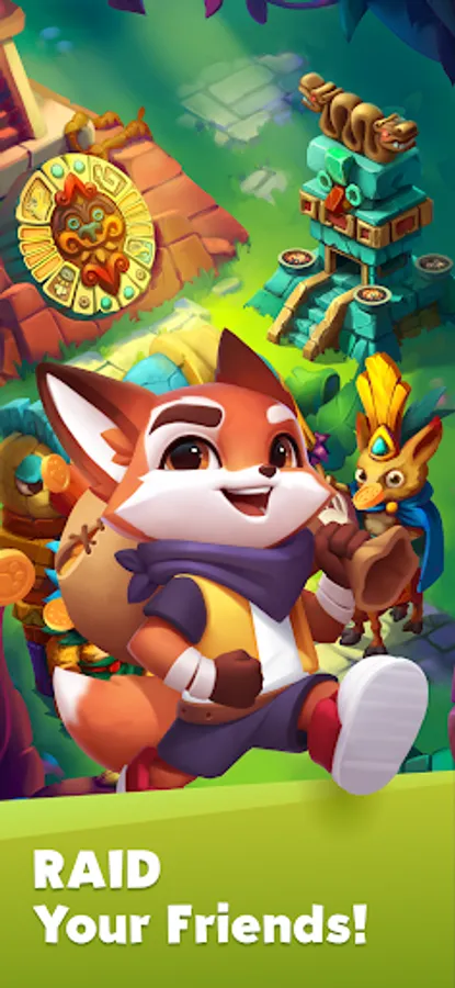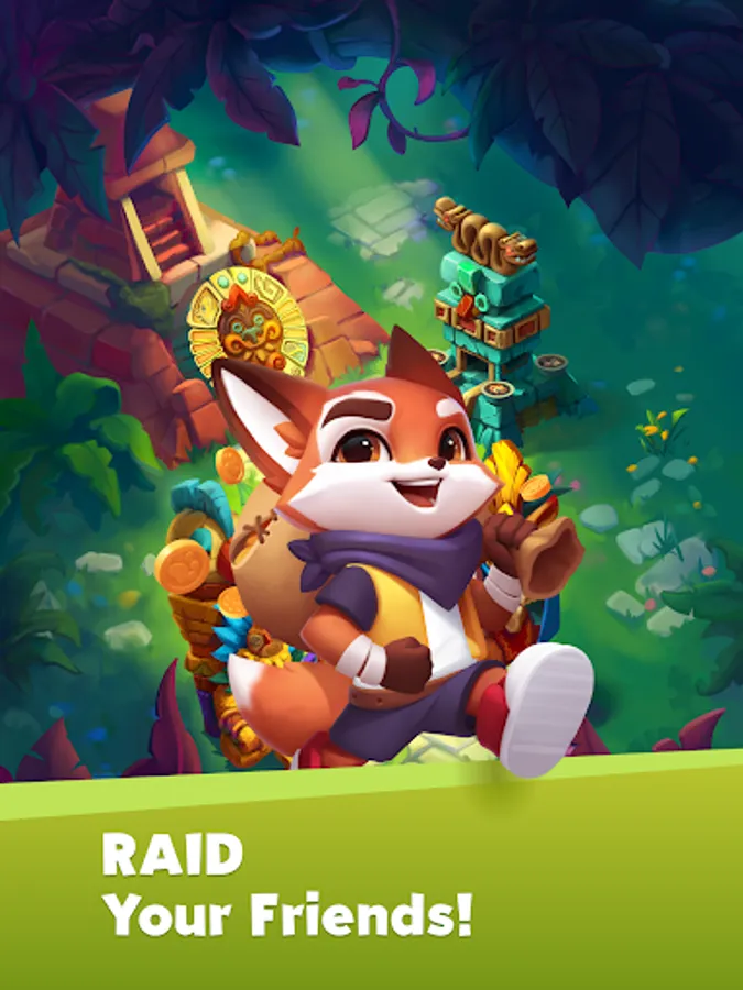 Try your luck by rolling dice to earn coins, shields, or the chance to go raiding other players' villages or hunting hidden treasure. Earn coins to rebuild your islands and progress through the levels. Win shields to protect your islands from other foxes trying to attack you.
