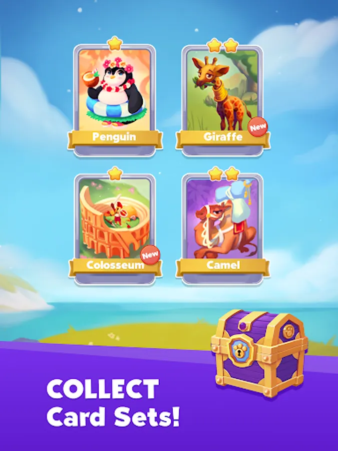 Open chests & get collection cards. Every collected set will give you extra bonuses. Build the largest collection among your friends!