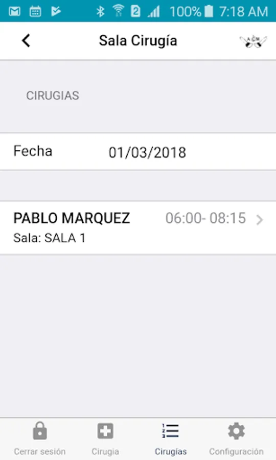 Application where they can report different time surgeries such as time entry and exit to room, the start and end of anesthesia and time in which he started and finished surgery.