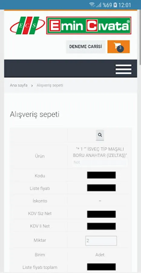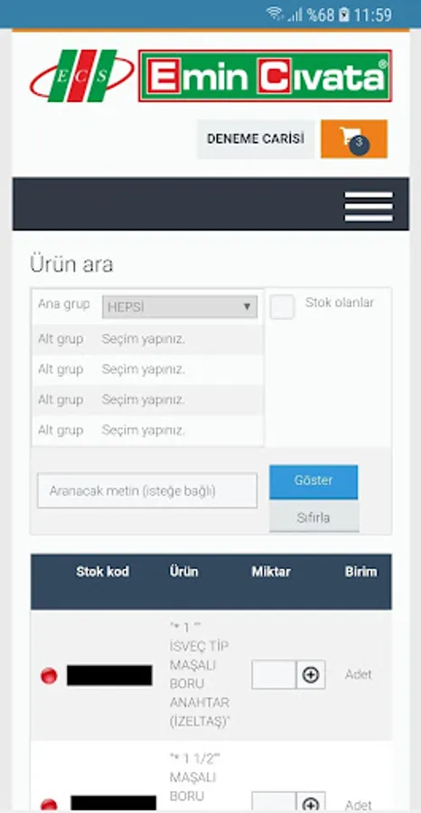 Emin Bolt customers; examine online products, place orders, and monitor current movements.