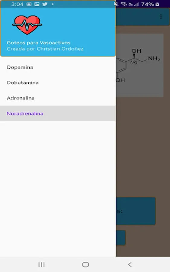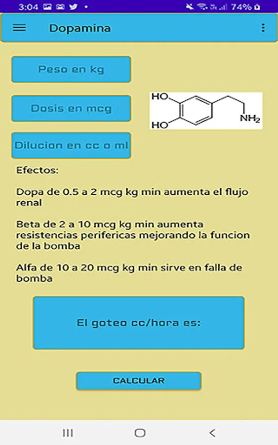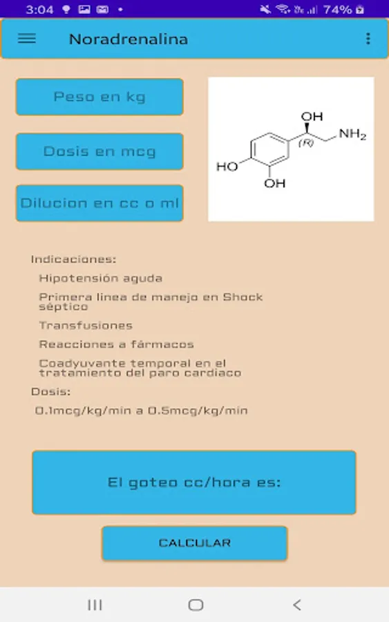 Practical application that allows calculating the drip of vasoactive drugs for use in emergency medicine