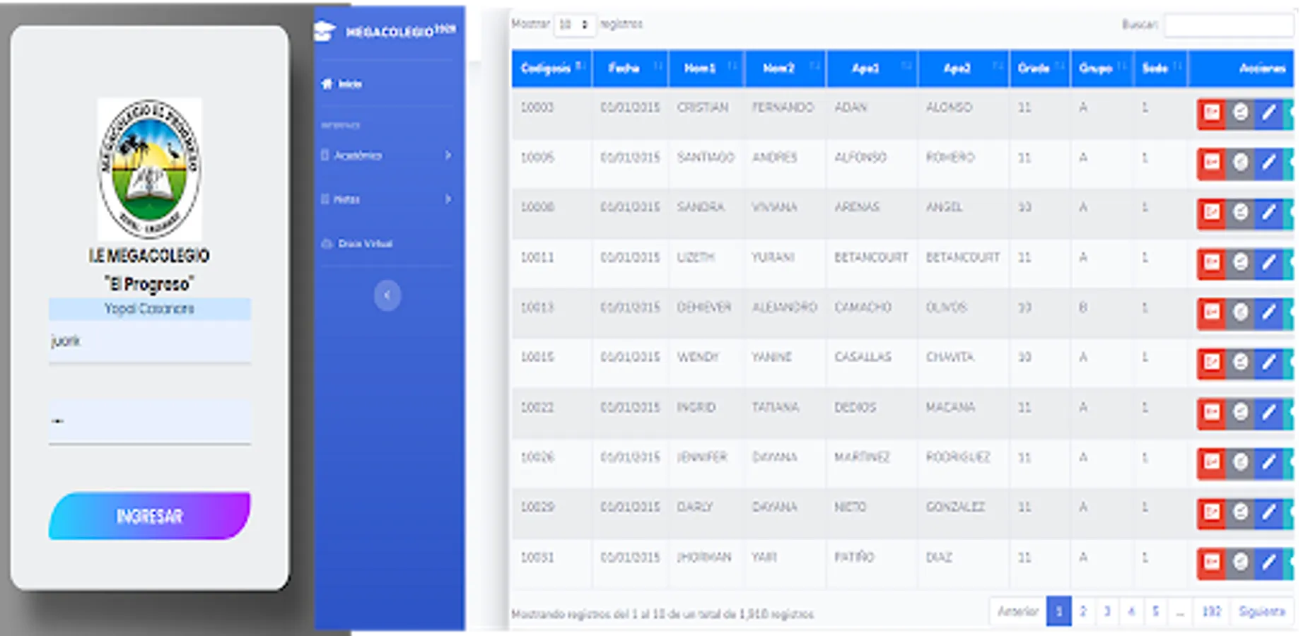 Designed to provide a Virtualization tool for the academic information of our educational institution, integrating the entire MEGACOLEGIO community in the training and administrative processes.