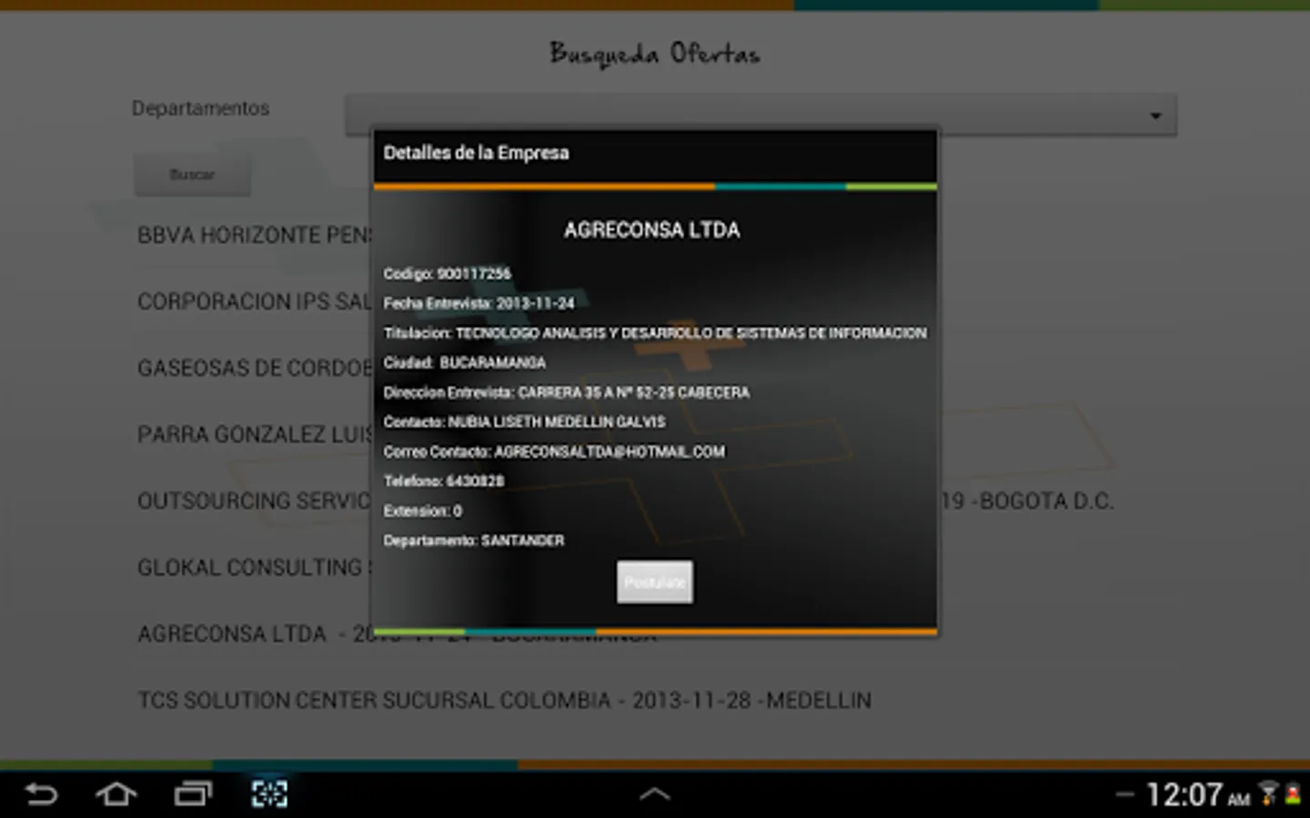 This is an application developed by learners Agribusiness Training Centre "La Angostura" of the Huila region that are participating in the contest SENA Applicate therefore is not complete and does not have access to the databases of seine is only a demo version