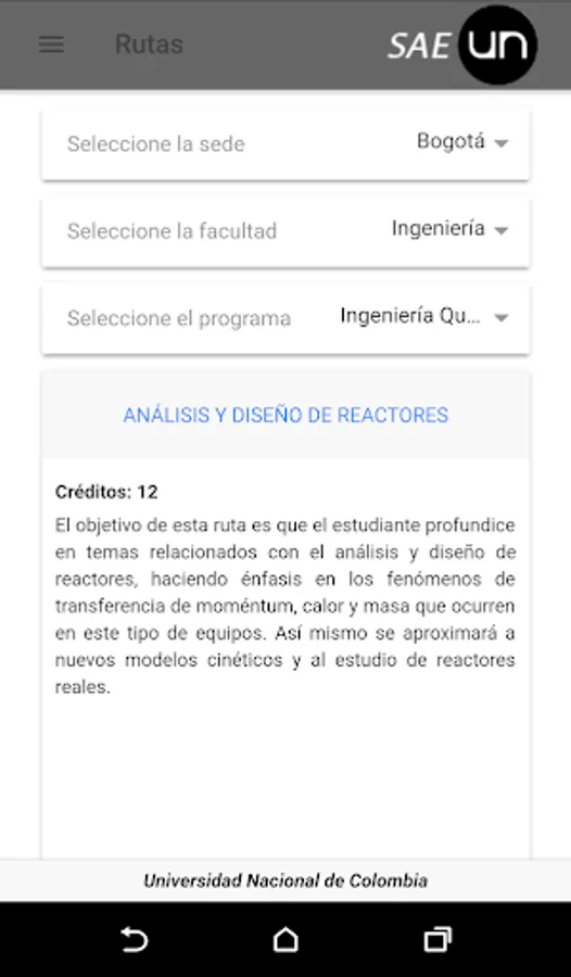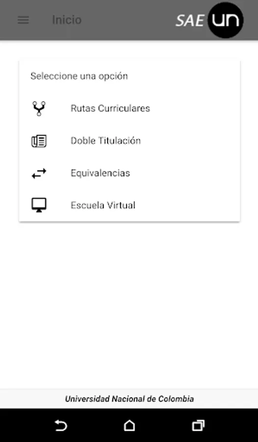 The application of the Student Accompaniment System of the National University of Colombia is a tool that seeks to facilitate academic support through the visibility of training routes and academic opportunities, such as double degrees. Also, seek to train in content related to: subjects of high level of loss and academic-administrative procedures. The contents in are divided into four modules: