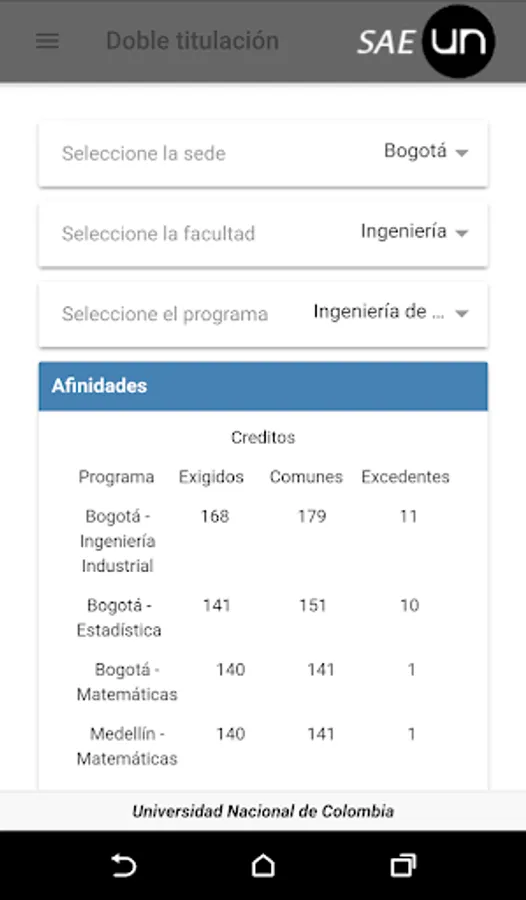 Double Degree: This module contains the analysis of affinities between study plans that illustrates, for each program where it is possible to do a double degree at the National University of Colombia.